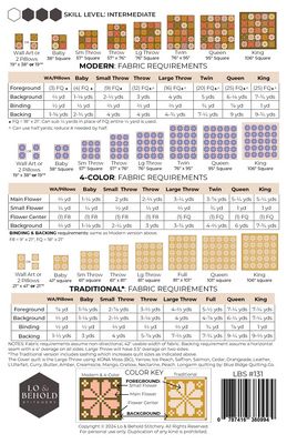 Knitted Blooms is a fun and retro-inspired pattern that uses strip piecing and thoughtful construction to create a bold and modern design. Resembling traditional knitted flowers, Knitted Blooms is a sister pattern to one of Lo & Behold Stitchery’s most beloved patterns, Knitted Star. Choose from 9 different sizes ranging from Pillow to King. This pattern also includes 3 colorway options for the quilt sizes, helpful diagrams, thorough instructions, quilting ideas, coloring pages, and a quilt planner to keep your project organized. 9 sizes include: Two Pillows (19″ x 19″ each), Wall Art (19″ x 38″), Baby (38″ x 38″), Small Throw (57″ x 57″), Throw (57″ x 76″), Large Throw (76″x 76″), Twin (76″ x 95″), Queen (95” x 95″) and King (106″ x 106″). Note: The Traditional colorway option includes sashing and increases the size of most quilts. See back page for exact measurements.