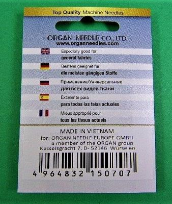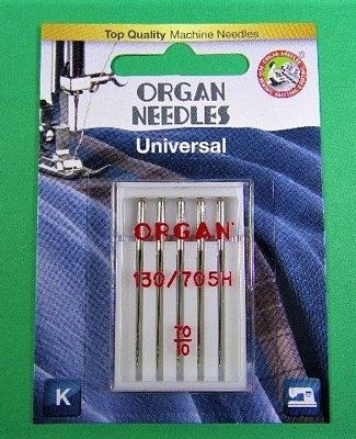 Organ Carded Universal Needle Size 70/10 – Sold by the Card – 5 Needles per Card. For general purpose use on tightly woven materials, linen, suede, etc.